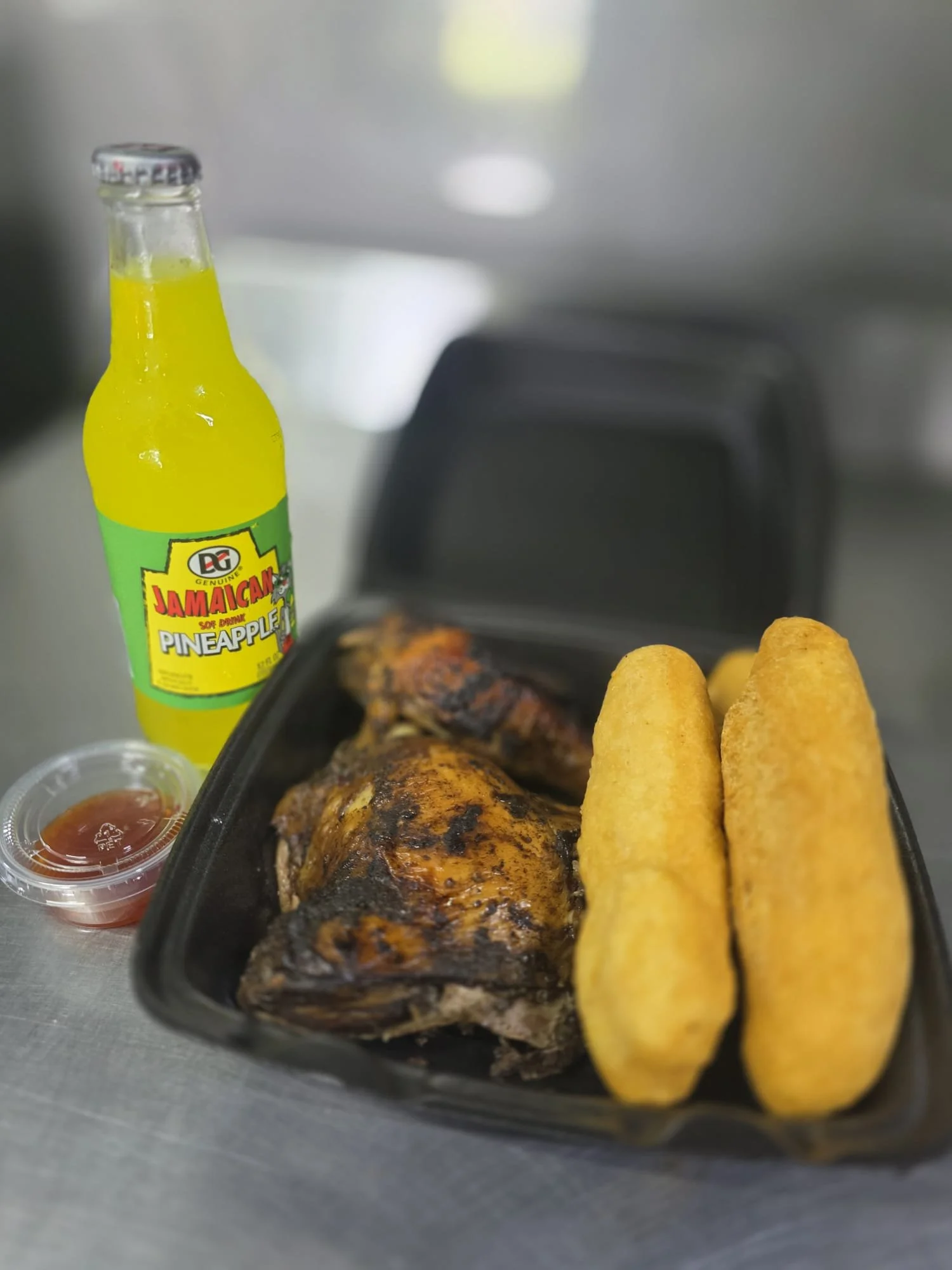 Experience the bold flavors of Jamaica with our authentic jerk chicken, marinated in a rich blend of Caribbean spices, fresh herbs, and slow-grilled to smoky perfection. Served alongside sweet, golden Jamaican festival—lightly crisp on the outside and soft on the inside—this classic pairing delivers the perfect balance of spicy and sweet in every bite.